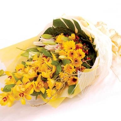 Glorious CymbidiumsShower her with a grand bouquet of Cymbidiums , Stargazer Lilies, Gerberas and Monstera. |