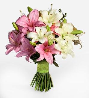 SWEET LILIESPink and white lilies tied together |